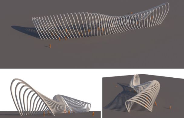 本次中標(biāo)設(shè)計范圍為公園紅線范圍內(nèi)的所有鋼結(jié)構(gòu)構(gòu)筑物(包括紅線外的延伸部分)及幕墻,涉及到鋼結(jié)構(gòu)涼亭、鋼結(jié)構(gòu)雨棚、鋼結(jié)構(gòu)連廊、海堤鋼結(jié)構(gòu)構(gòu)筑物、摩天輪廣場構(gòu)筑物、游客服務(wù)中心入口構(gòu)筑物、天幕廣場構(gòu)筑物、遮雨涼亭、景觀橋(鋼結(jié)構(gòu)部分)等鋼結(jié)構(gòu)構(gòu)筑物設(shè)計和游客服務(wù)中心(含附屬樓)的幕墻設(shè)計等18個子項設(shè)計內(nèi)容,投影面積約 2萬平方米。鋼結(jié)構(gòu)構(gòu)筑物最大跨度達40米,所有項目均為曲面異型結(jié)構(gòu),造型新穎,設(shè)計難度大,因此投標(biāo)采用了邀請投標(biāo)的形式。